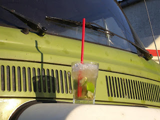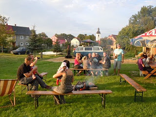 Im Niemandsland, was sich übrigens direkt hinter der deutschen Grenze befindet wohnt unser langjähriger Freund Rudek. Im Garten seiner Victor-Cafe genannten Kneipe, die übrigens wenn ich dort bin immer zu hat, bieten sich beste Voraussetzungen für ein Campingwochenende mitten im Ort. Auch ein paar Einheimische mischten sich in unsere illustre Runde. Alle Anwesenden genossen das tolle Spätsommerwetter und feierten bis spät in die Nacht am Caipi Bulli und tanzten am Sandstrand zur Musik des HifiCampers.